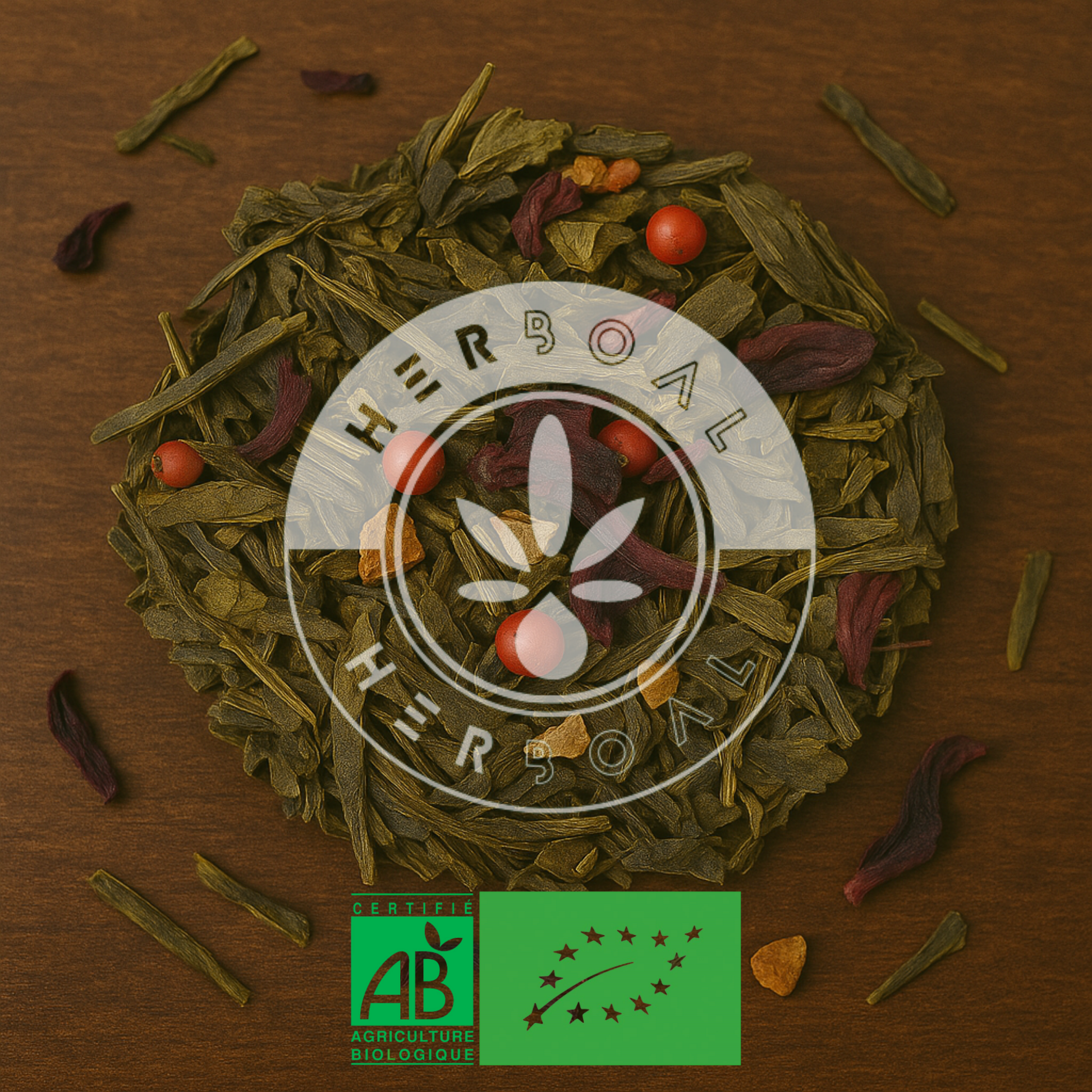Thé vert Sencha* et China White Monkey*, enrichi de fleurs d'hibiscus* pour une note florale. Les arômes naturels, les écorces de citron*, le poivre rose*, ainsi que les groseilles* et les pommes* séchées, apportent des saveurs fruitées et épicées. L'huile essentielle de citron vert* ajoute une touche d'agrumes.